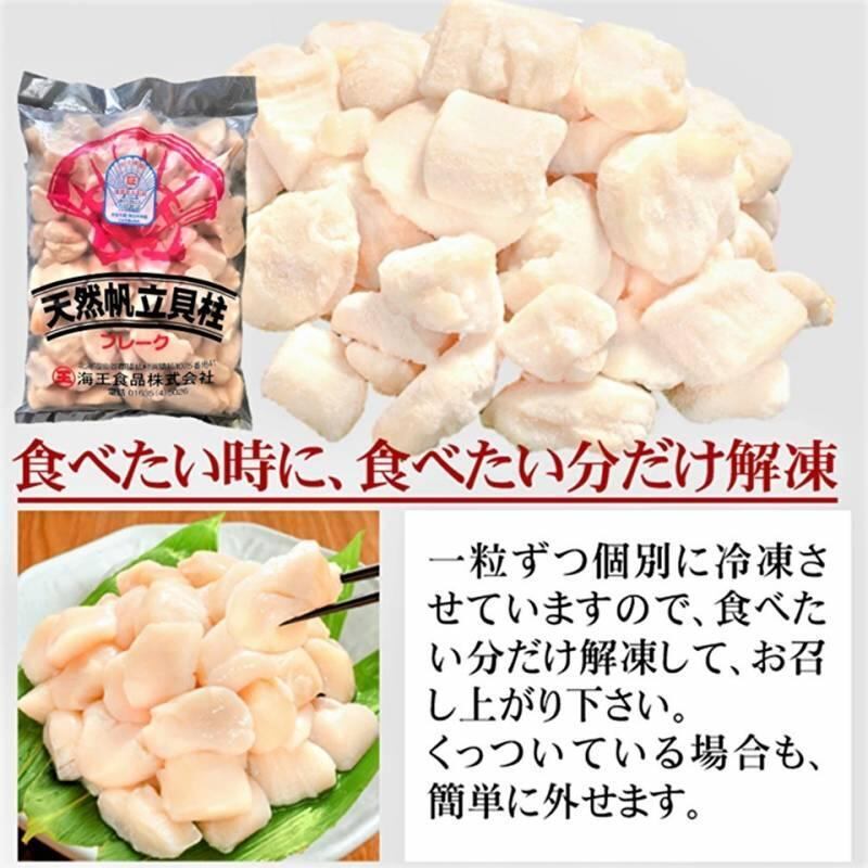 帆立貝柱 フレークB 1.0kg 玉冷 オホーツク 宗谷猿払産 1口サイズ感 お買い得感あり。