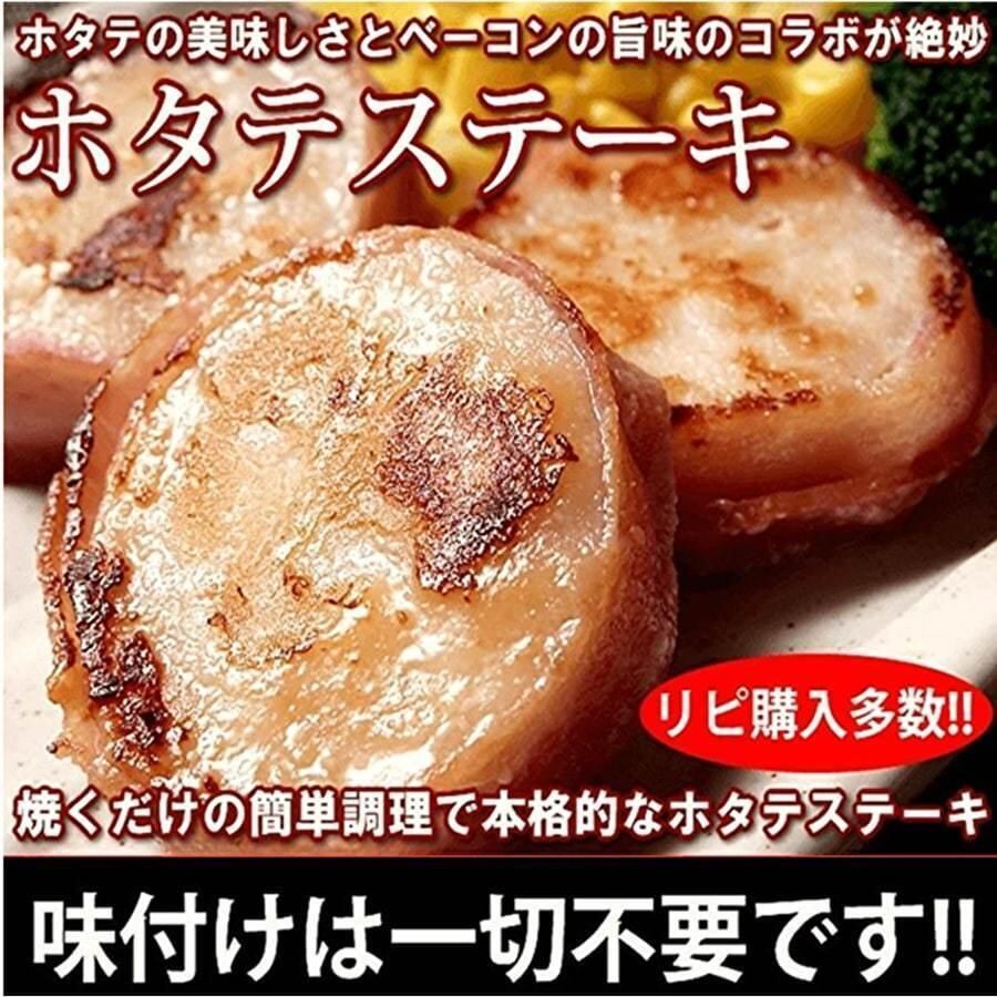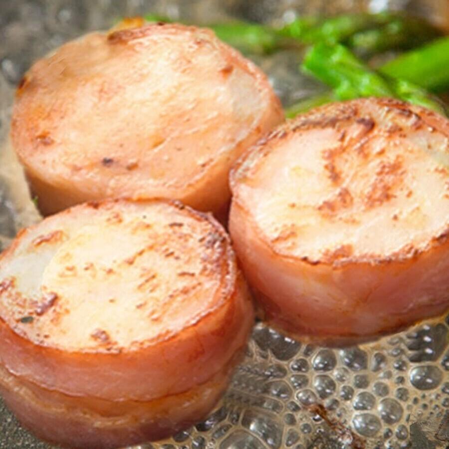 新鮮なホタテの身を粗ほぐしにして、デンマーク産の特製ベーコンで巻き込んでギュッと美味しさを凝縮させた海鮮ステーキです。食べるとジュワ〜っと染み出す素材の味がたまらなく美味しいです。