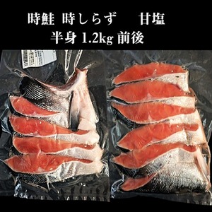 時鮭甘塩 時知らず 半身1.2kg前後 ロシア産 沖流し稚内加工の貴重な時さけです。