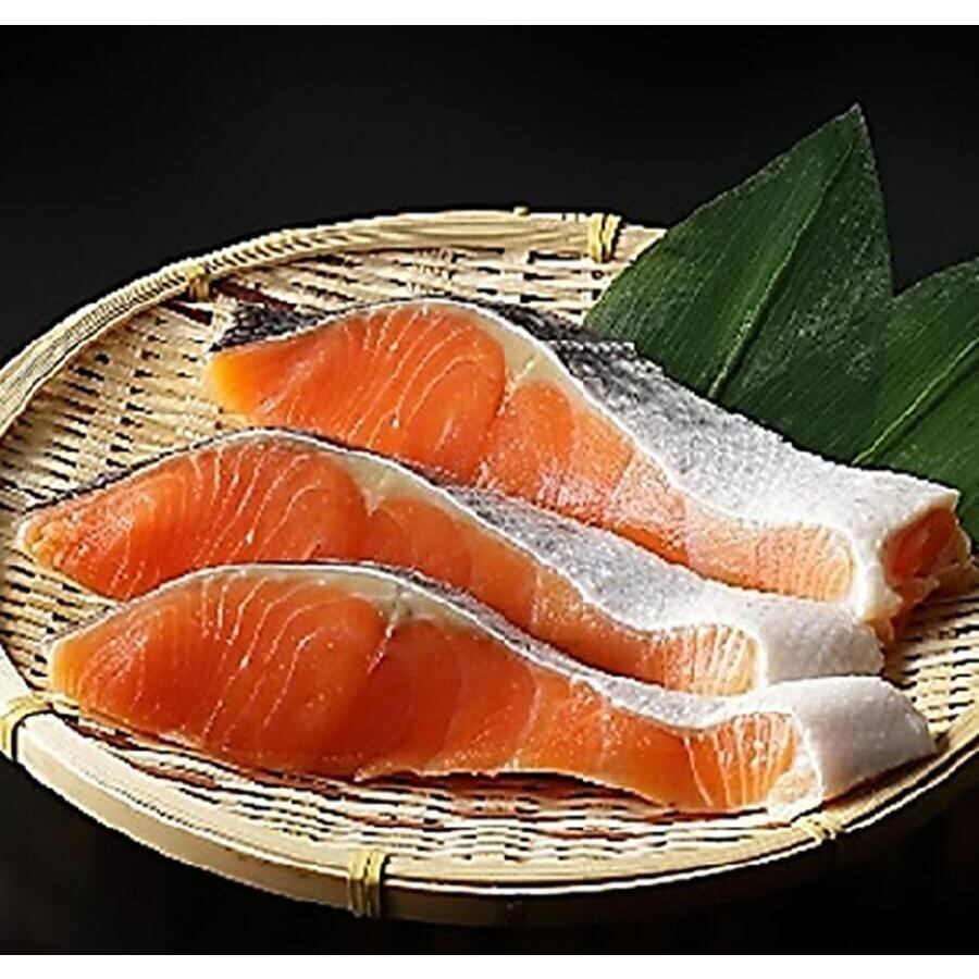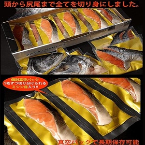 鮭は脂ののりが大変よくとても美味い!北海道産の銀毛鮭を新巻鮭にして、頭から尾までをすべて切り身にしました。