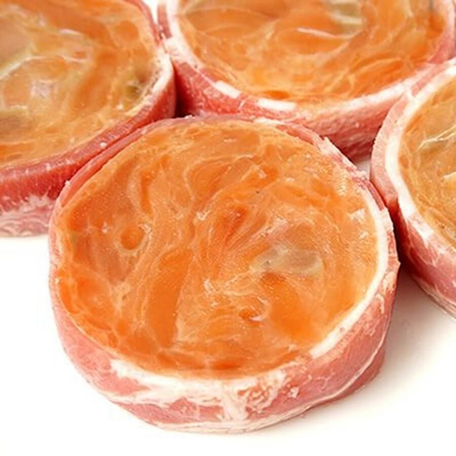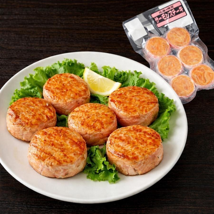 稚内(宗谷)産のフライパンで焼くだけの簡単調理で、本格的な海鮮ステーキをお楽しみいただけます。新鮮な鮭の身を粗ほぐしにして、デンマーク産の特製ベーコンで巻き込んでギュッと美味しさを凝縮させた海鮮ステーキです。