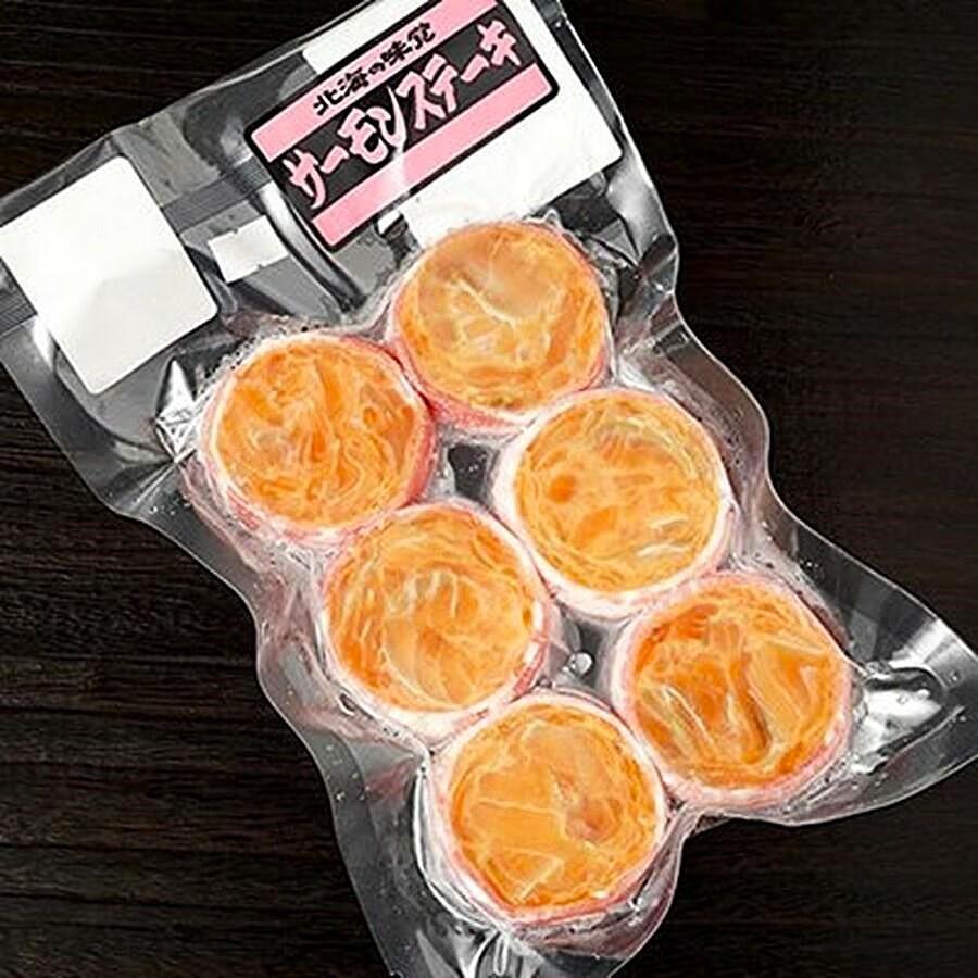 北海道 稚内 サーモンステーキ 6枚入 直径は6cm前後あります。
