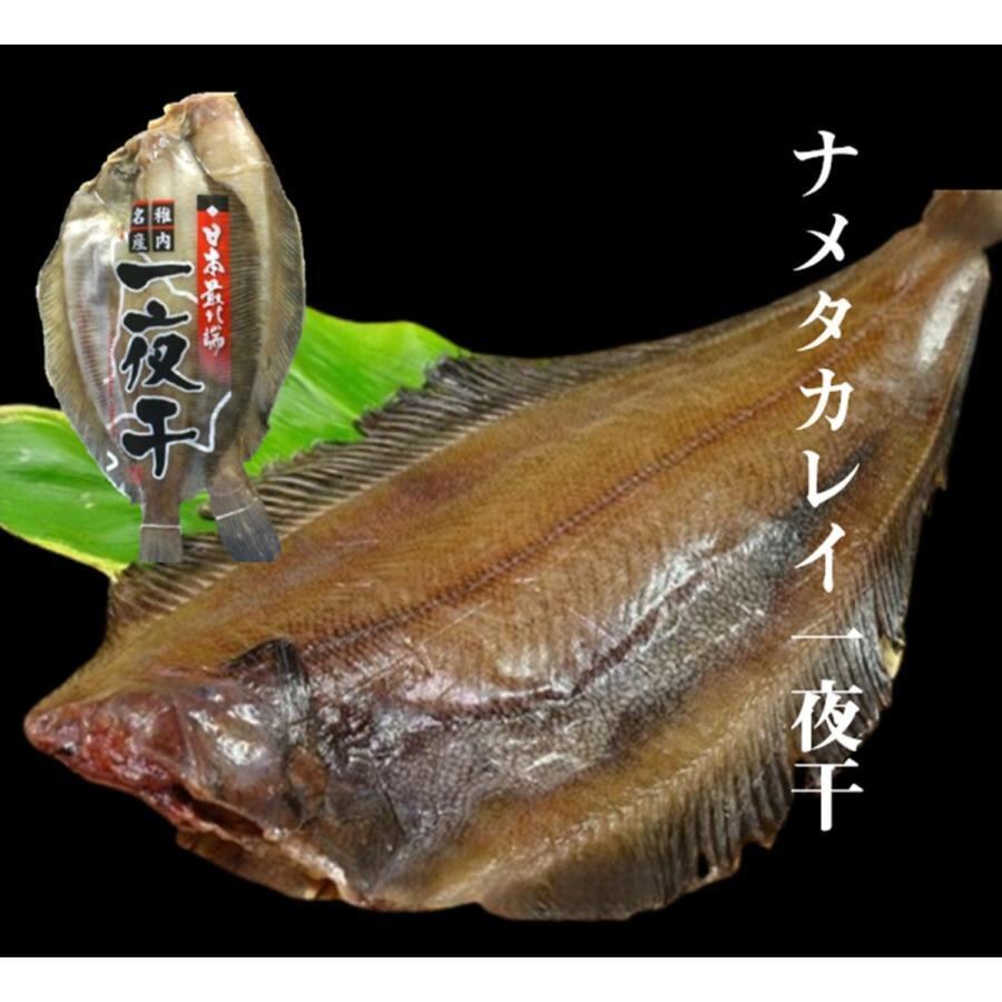 ナメタカレイの正式名称は「ババガレイ」と言い、見た目の大きさと楕円形の体、表面のヌルヌルした粘膜が特徴的で、その粘膜の多ささからナメタ(滑多)カレイと呼ばれています。旬の時期に稚内で獲れたナメタカレイを、新鮮なうちに干しあげて旨みをギュッと凝縮させました。