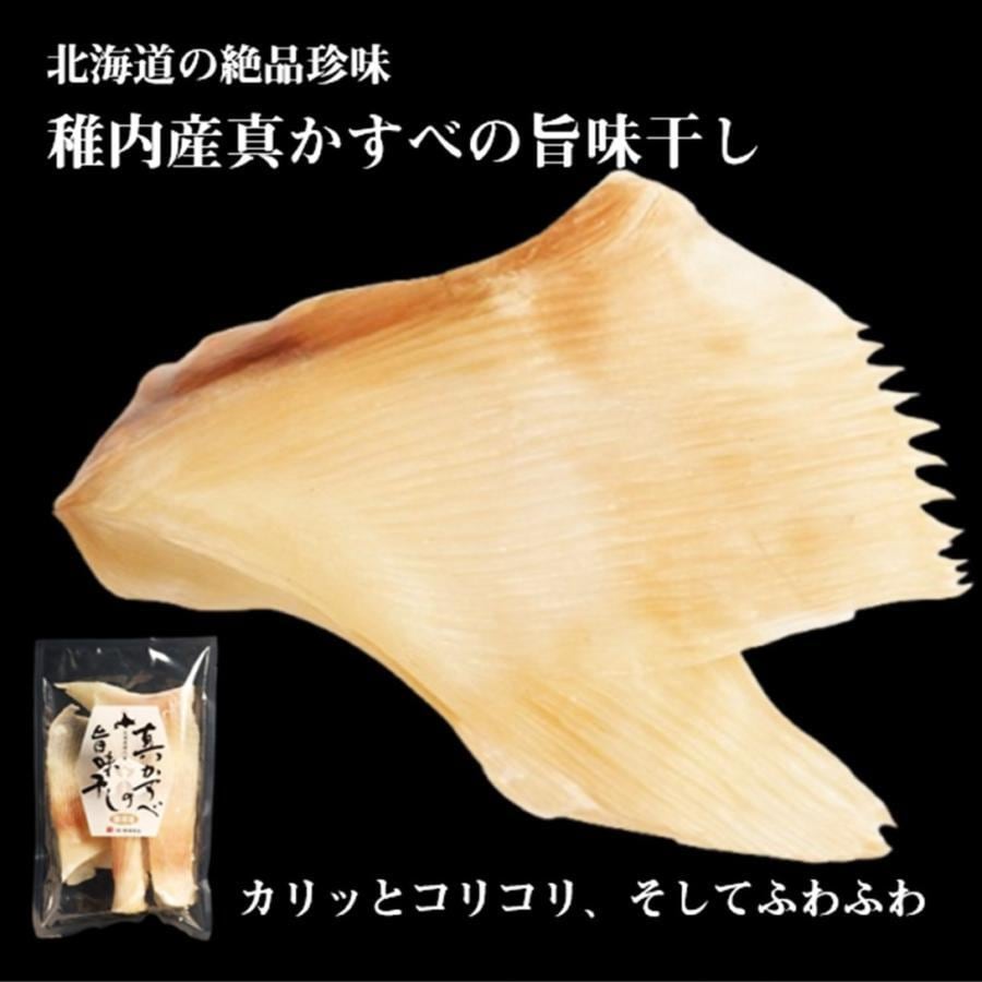 稚内港で水揚げされた「真かすべ」(エイの一種)を利尻昆布出汁の効いた旨味たれに漬け込み干し上げた真かすべ旨味干し,