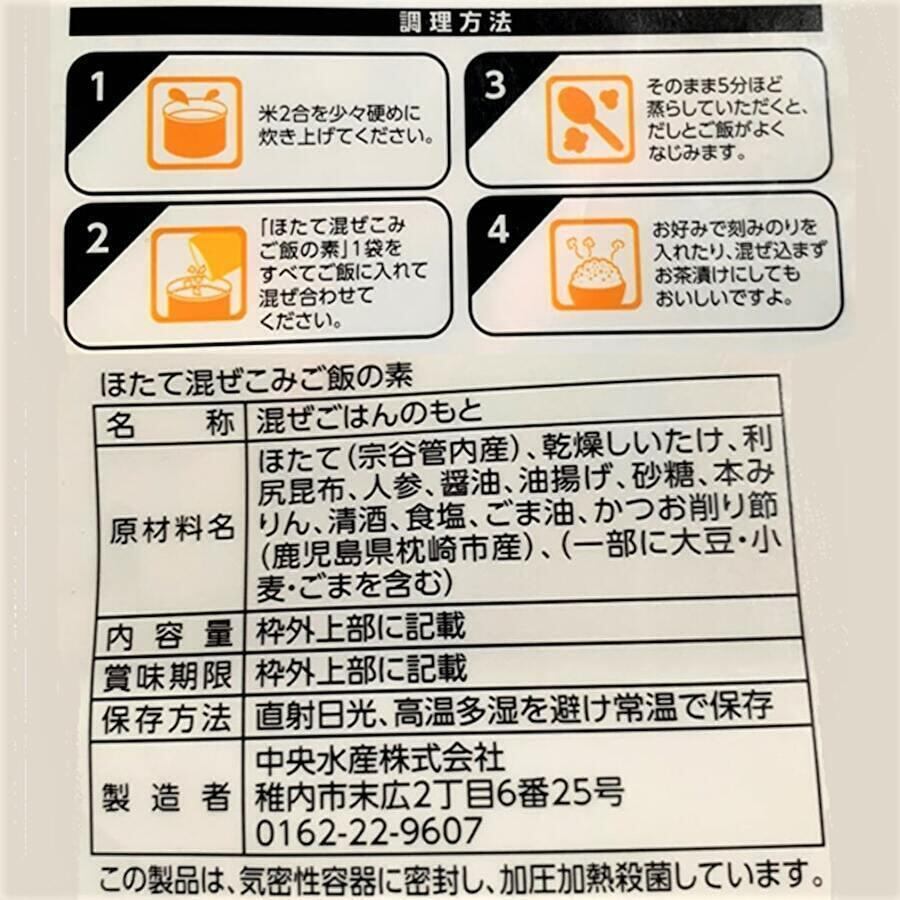 宗谷のほたて貝の旨味と食感を味わえる混ぜこみご飯の素。