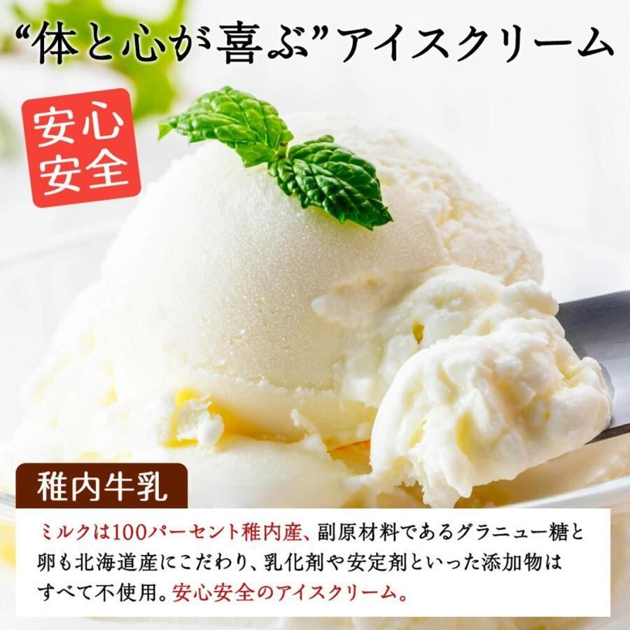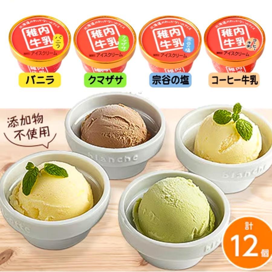 稚内産ノンホモ生乳から無添加で製造した絶品アイスクリームで、宗谷の塩・バニラ・クマザサの4種類を3個ずつを詰め合わせた12個セットです。乳安定剤等添加物を一切使用せず手づくりで造り上げた絶品です。