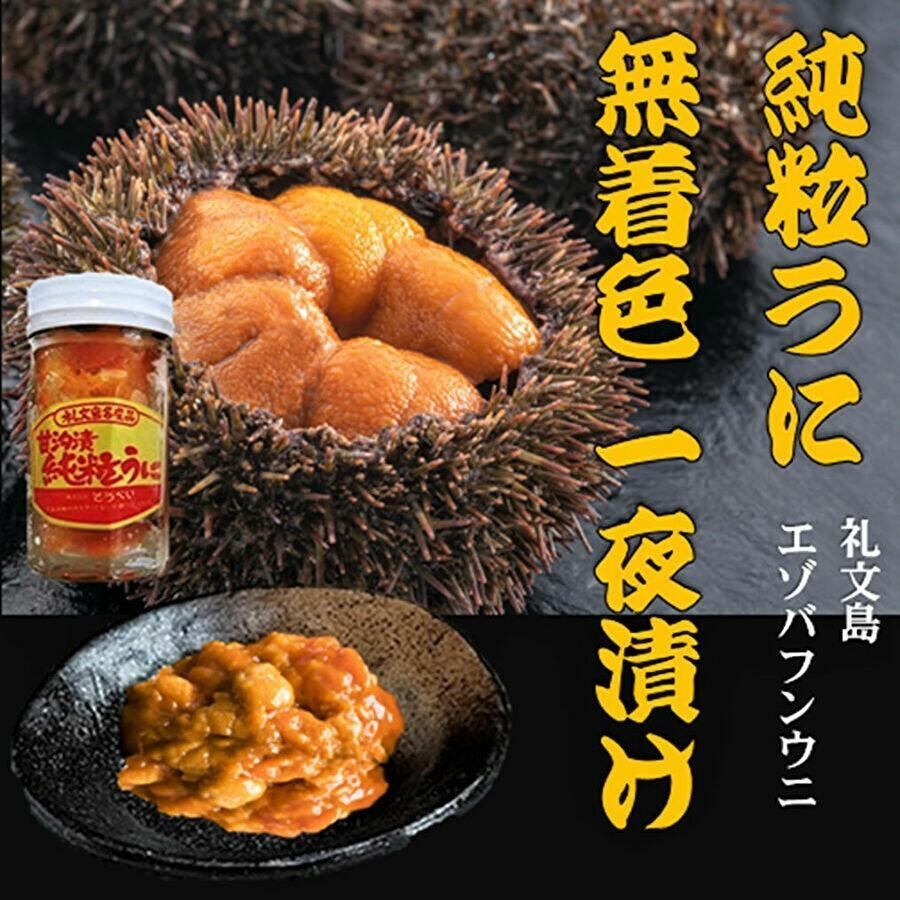 礼文島産 純粒うに(甘口)60g瓶 2本の詰め合わせセットです。(ケース入)