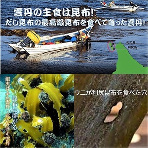 最高の天然利尻昆布を食べて育ったムラサキウニを、添加物を一切使わず一晩塩水に漬け込む熟成製法で、自然の味、素材、香りを生かした商品です。