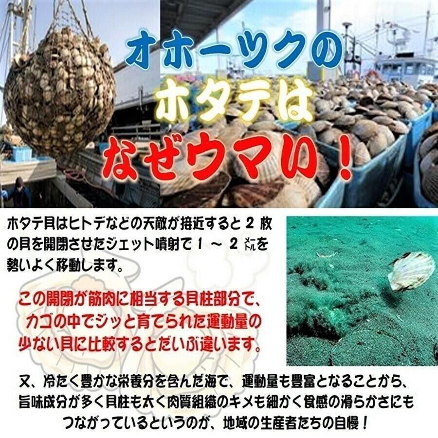 貝から素早く貝柱を取り出し急速冷凍した貝柱は、プリプリ感抜群の獲れたてそのままの鮮度が自慢。