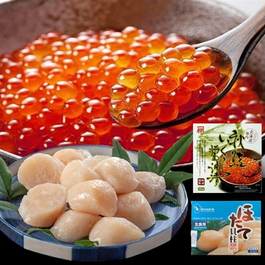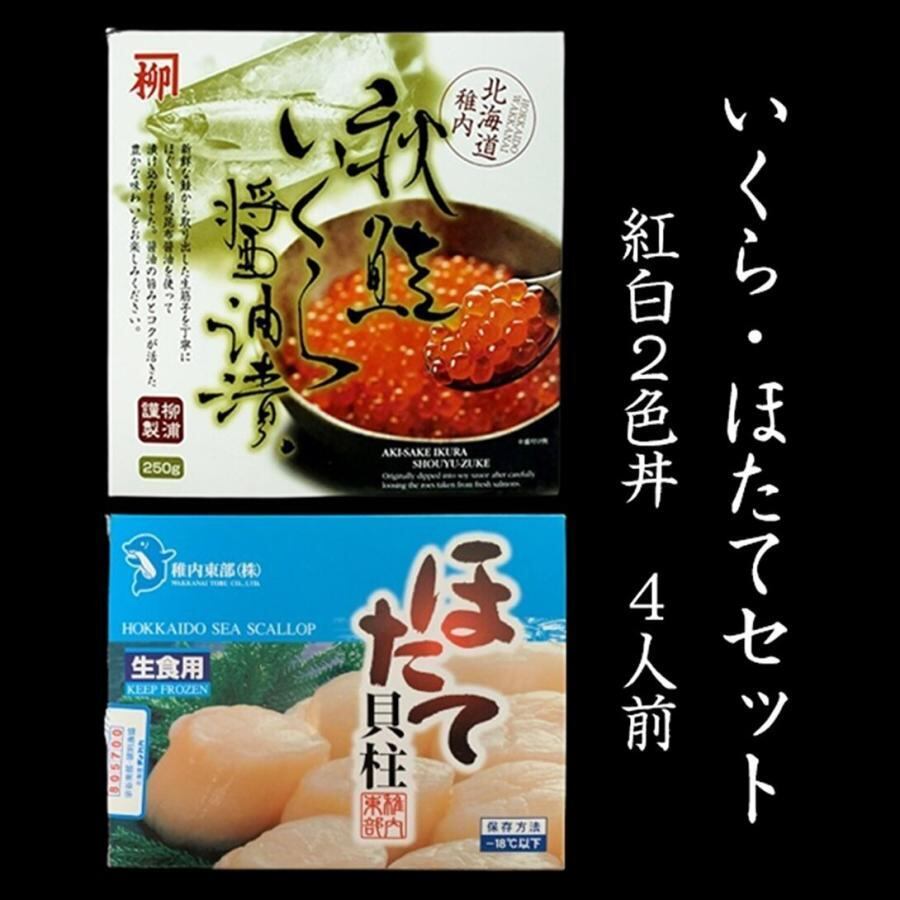 稚内ブランドイクラ250g・ホタテ正規品300gセット 紅白2色丼4人前