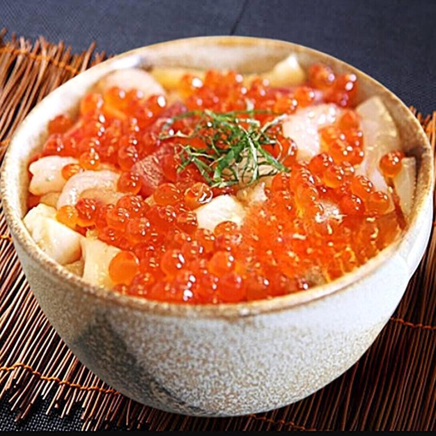 100% 稚内産。水揚げされたばかりの高鮮度の鮭卵を使用。老舗独自の利尻昆布ベースのまろやかなタレに漬け込んだ醤油いくら