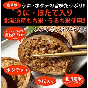 身厚のスルメイカに北海道産もち米、うるち米と一緒に、ウニとホタテを詰め込んだいかめしの豪華版!北海道の”美味しい!”を詰め込みました。
