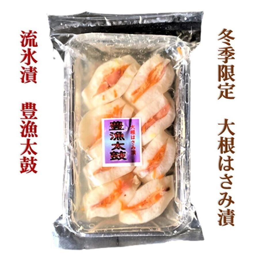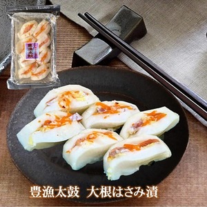 ●豊漁太鼓大根はさみ漬 大根と大根の間に鮭を挟んだ北海道ならではの浅漬。