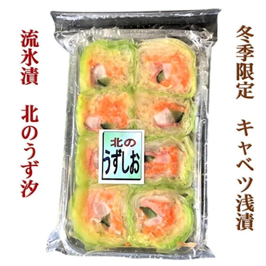●北のうず汐キャベツ浅漬 北海道産のキャベツの彩り豊かなハサミ漬。