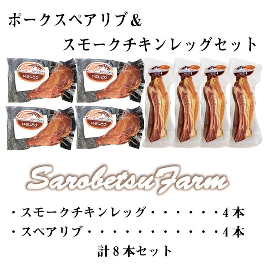 ポークスペアリブ4本スモークチキンレッグ4本/計8本セット 手造りサロベツファーム