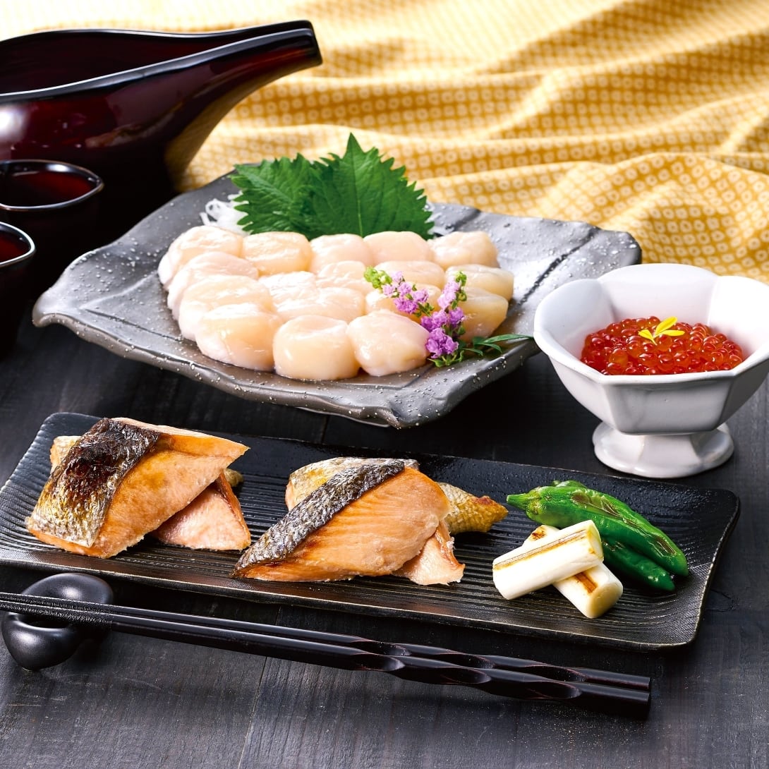 商品内容 ■北海道産秋鮭切身/70g×4、北海道産ほたて貝柱/200g、北海道産いくら醤油/100g