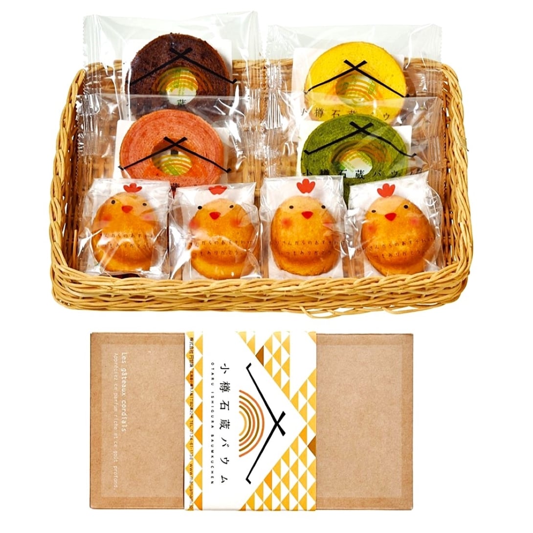 北海道産素材を使用した4種類のバウムクーヘンと見た目に可愛いトリさんマドレーヌの詰め合わせ