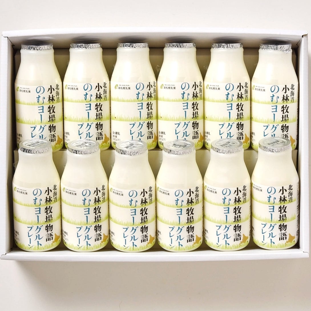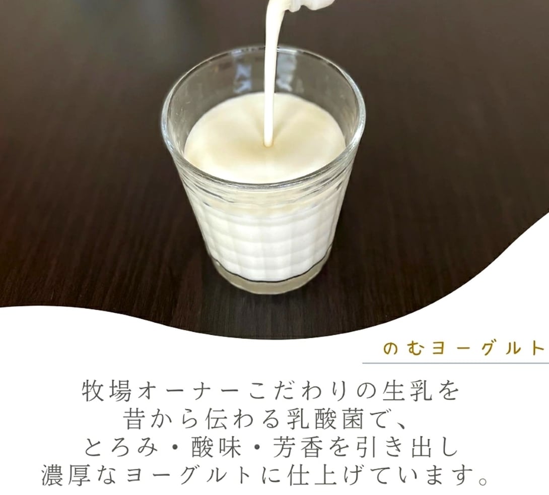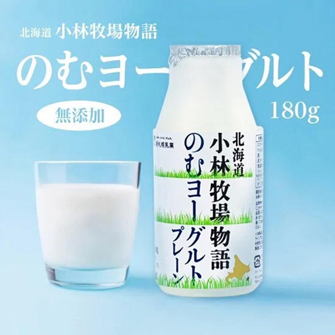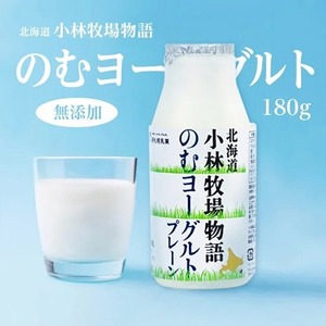 北海道江別市の小林牧場でとれた生乳を100%使用し、独自製法で適度なとろみ・酸味・芳香を引き出した濃厚なのむヨーグルト。