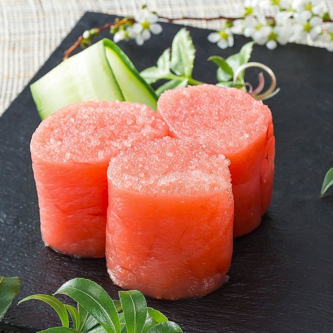 厳冬のアラスカ海域で獲れたスケソウたらを水揚後すぐに船内で卵を取り出し瞬間冷凍した冷凍卵のみを使用した鮮度が自慢の商品。