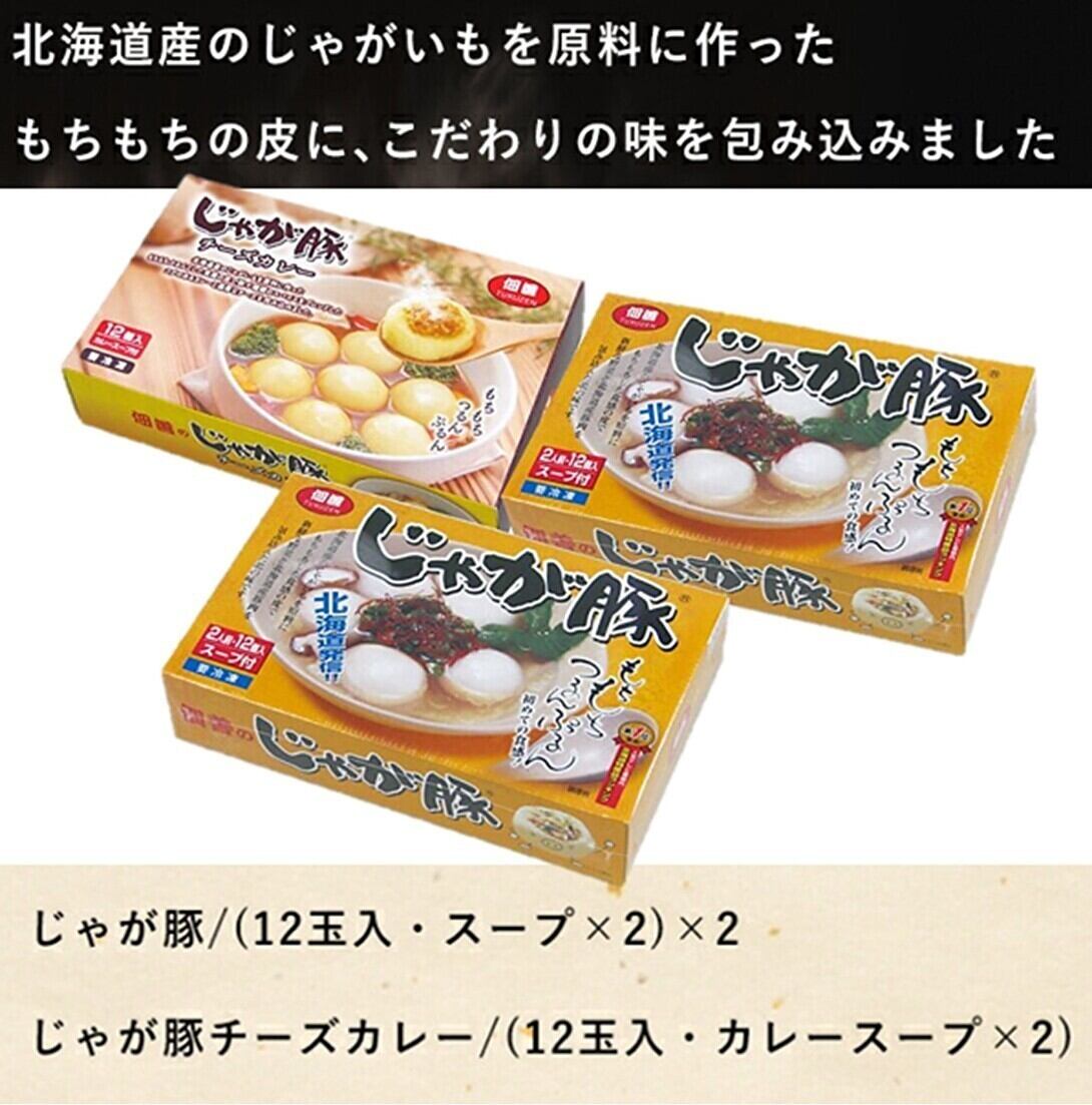 ・内容量:じゃが豚/(12玉入・スープ×2)×2、じゃが豚チーズカレー/(12玉入・カレースープ×2)