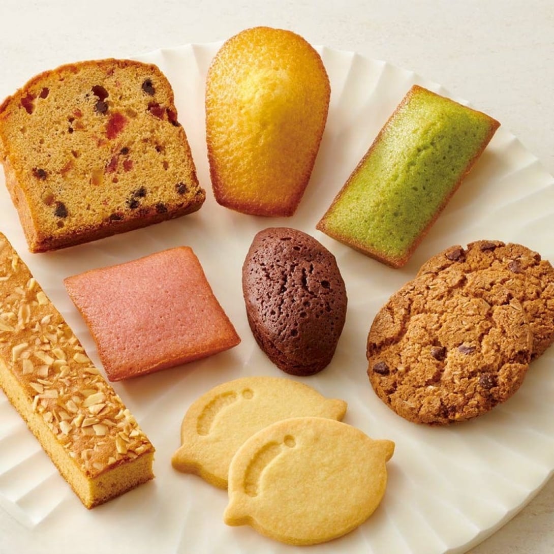 ●内容:オレンジマドレーヌ×1個、ストロベリーショコラケーキ×1個、ピスタチオフィナンシェ×1個、ブラウニー×2個、ブラウンシュガーパウンドケーキ×1個、チョコチップクッキー×2個、レモンクッキー×1個