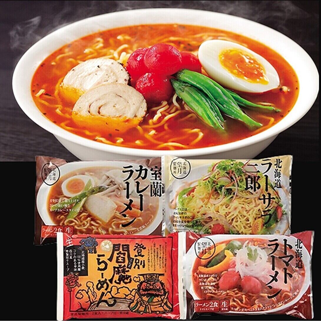北海道産小麦100%で練りあげ、コシのある麺を使用したラーメンサラダや登別の閻魔ラーメンなど北海道ならではの個性豊かな楽しいラーメンセット。色々な味をお楽しみいただけます。