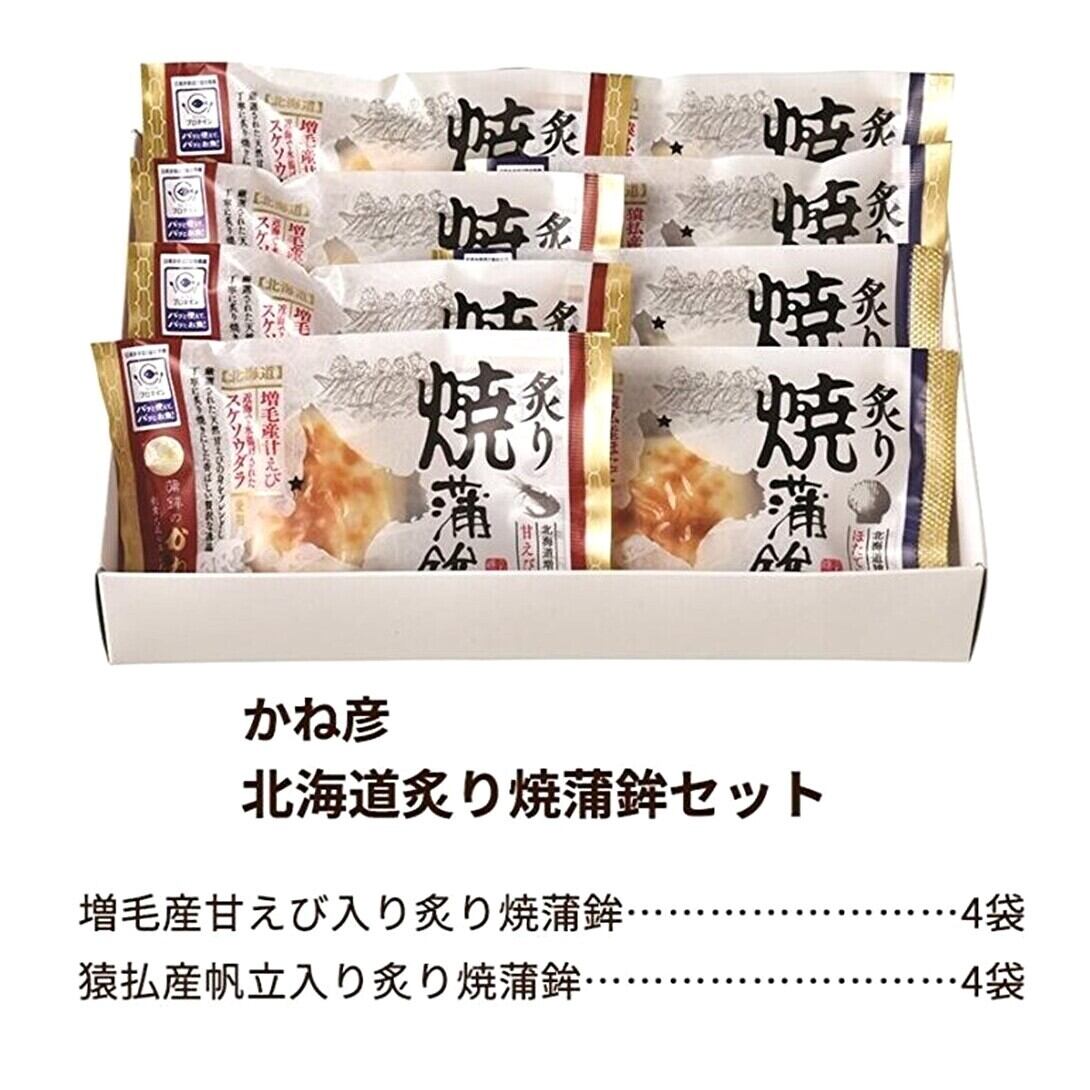 増毛産甘えび入り炙り焼蒲鉾・猿払産帆立入り炙り焼蒲鉾/各4袋