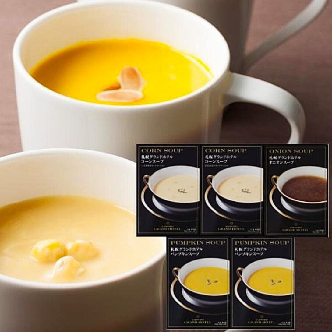 商品:コーンスープ・パンプキンスープ・各(120g×2袋)×各2箱、オニオンスープ(120g) 合計 5箱入