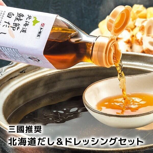 内容:三國推奨北海道羅臼昆布だし・三國推奨北海道ほたてだし・三國推奨北海道鮭節白だし・三國推奨つぶ野菜ノンオイルドレッシング・三國推奨おろし野菜ノンオイルドレッシング/各200ml